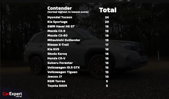 Sau khi hoàn thành cả ba thử thách, các mẫu xe được xếp hạng theo tổng điểm. Hyundai Tucson đạt 24 điểm, vượt qua nhiều đối thủ quen thuộc trong phân khúc. Điều này chứng minh Tucson không chỉ mạnh mẽ trên đường phố mà còn tự tin chinh phục địa hình khó.