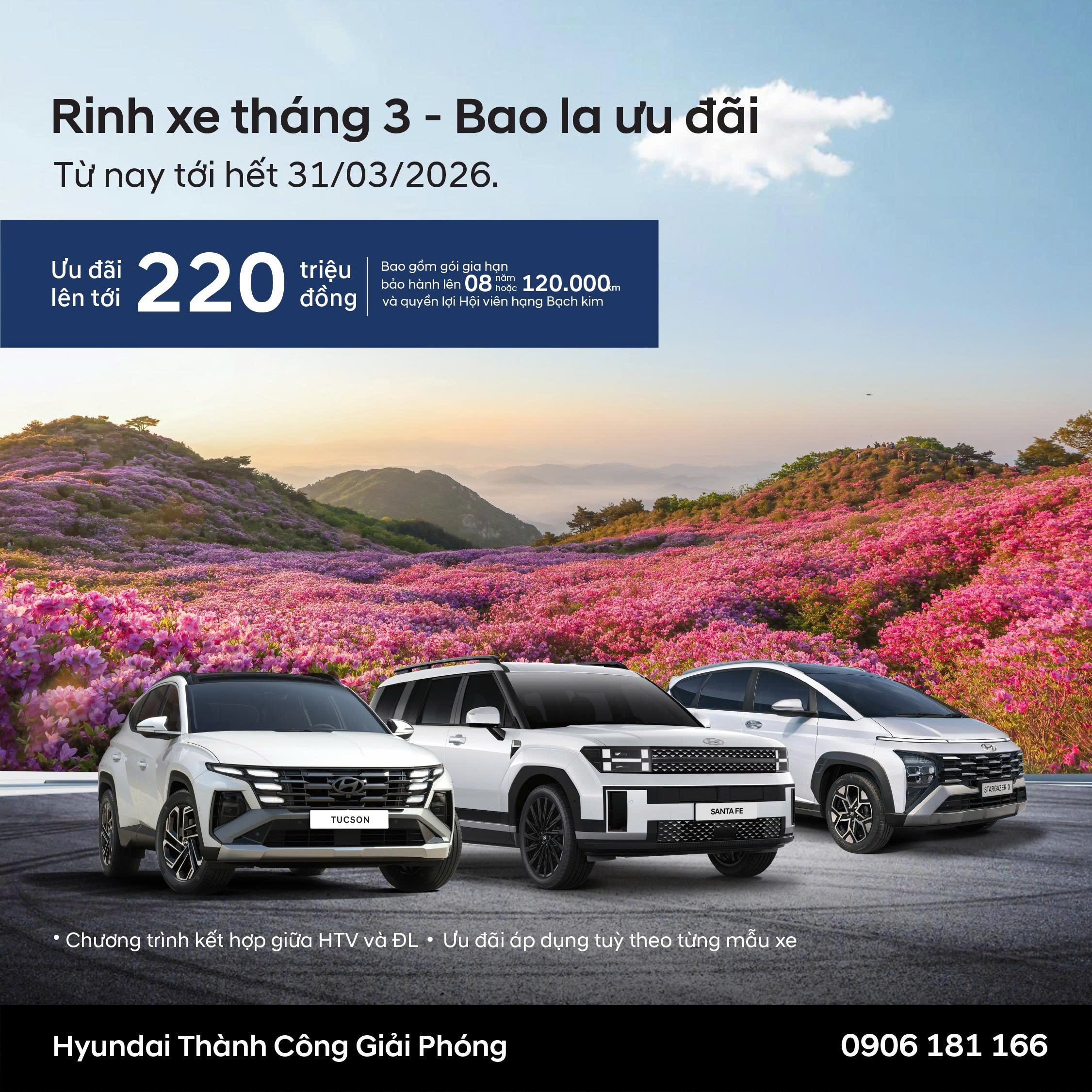 🚗 Ưu đãi lên tới 220 TRIỆU ĐỒNG cho khách hàng mua xe Hyundai trong tháng 3/2026 này bao gồm:
